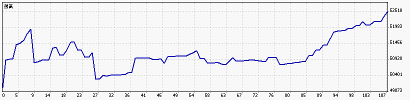 1週経た口座資産遍歴。前は51500前の三段とんとんとーんと上がったとこまで。なぜまっすぐナナメにいかないかってぇと、スワップ評価ぶんで平坦になっておるのでしょう、多分。