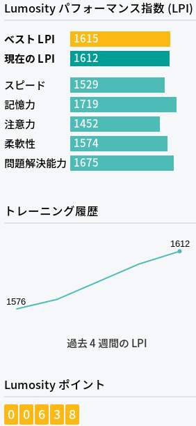 ©lumosity LPI更新しつつ、speed upし注意力散漫、問題解決能力もやや落ち。速度と作業精度は両立し難い。 1600は案外ヌルッと届いた。どこまでいけるんだろうなこれ。 記事タイトルと同名のフリーゲームは最初のうちはなかなか遊べます。 PR