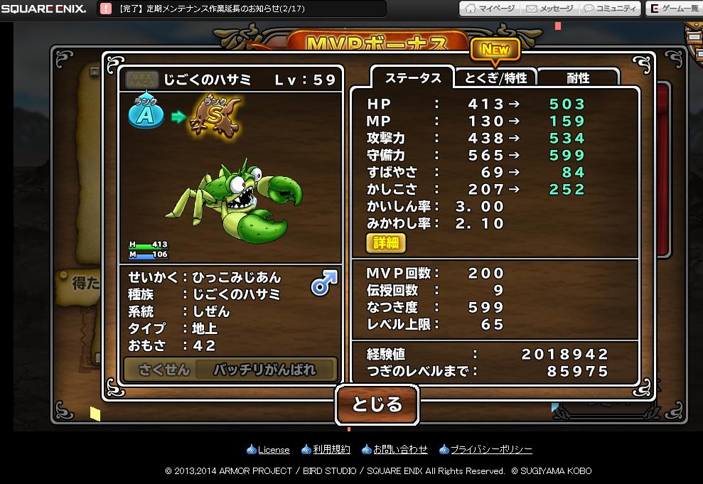 このガーゴイルをランクアップさせたいのじゃよ。今日100回目のMVPでピオリム覚えました。