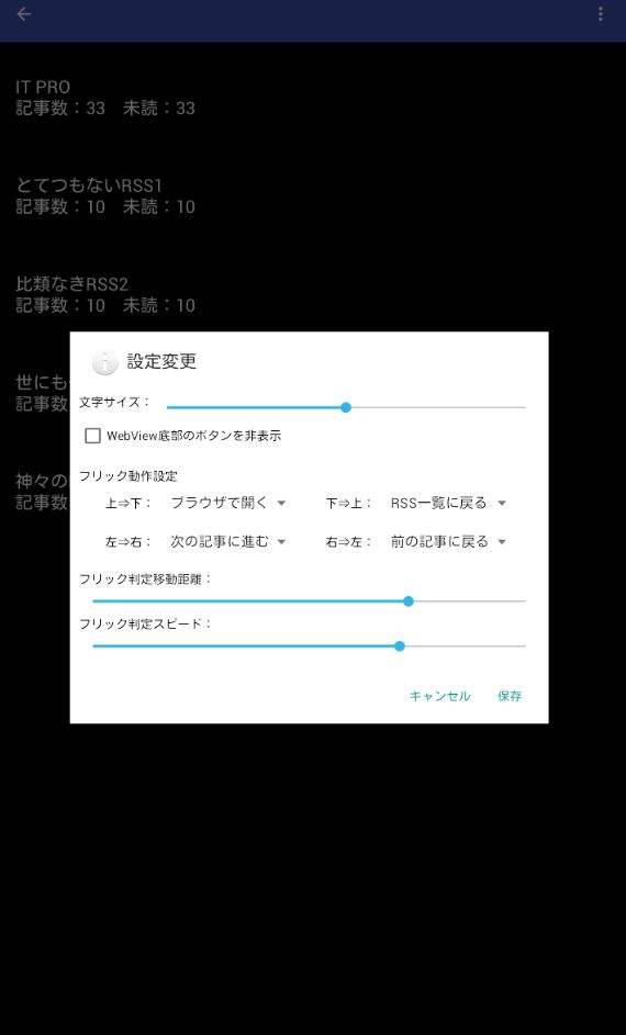 こんな感じでフリック挙動をカスタマイズできる。このへんのUIは今日ガーッと作り直した。フリック自体が昨日本格的に構築はじめたばかりなのだ。いまだ非同期処理に付随する問題で手こずってる。