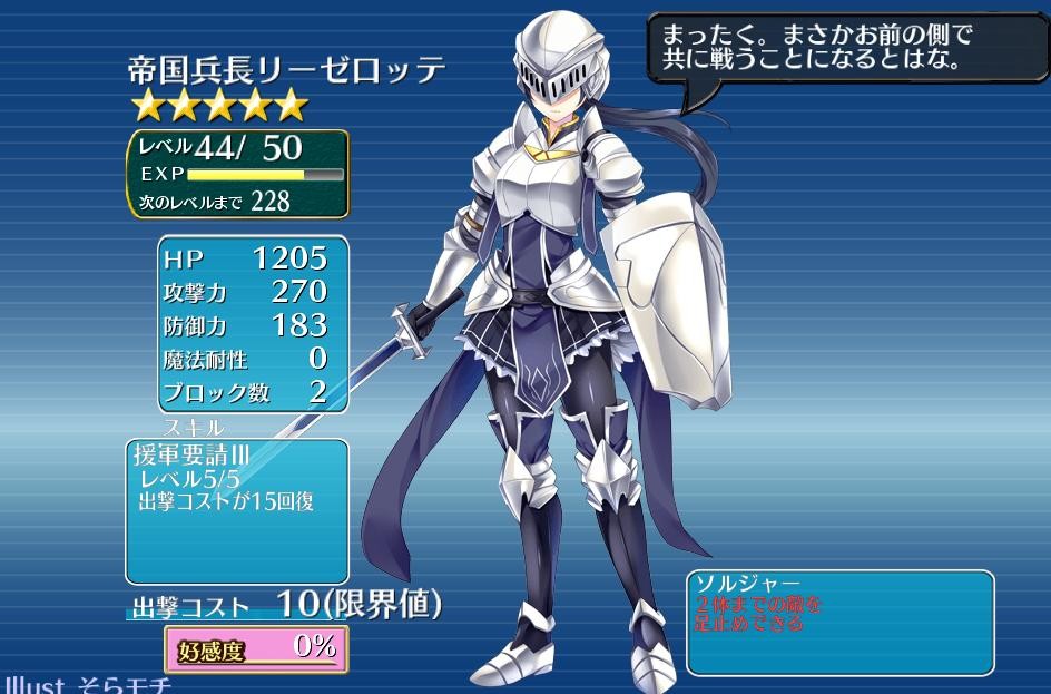 リーゼロッテは最初4枚重ねでコスト-1スキル+2、次3枚(白聖霊1)でいったらコスト-1スキル+2と、コストがちまちまで心配になったものだがさらなる3枚重ねでヅガンとスキルマ下限を達成した直後が画像。