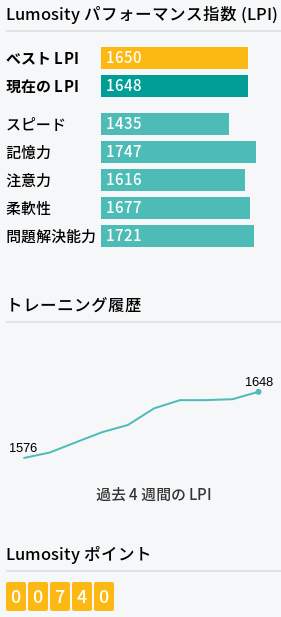 わりと順調に伸びるLPI、いっぺん1500台を見たがすぐしぼんだスピード、反比例して元の水準に戻った他パラメータ。すべてが渾然一体となってわしの頭脳、脳具合を象徴しております。ここ最近睡眠が改善されたのは影響してると思う。